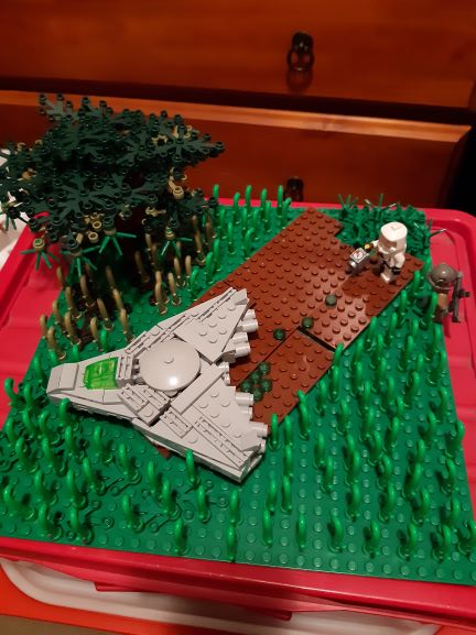A great little vignette, a crashed craft, curious investigator, military presence, who knows whats inside? Well we do, because Neil was kind enough to build the pilot of the craft as well!
