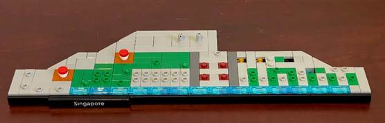 - 6366690 – 1×8 Black tile with white “Singapore” print – used on the front of the base
