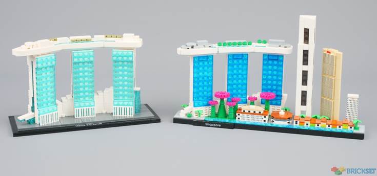Containing 827 pieces Singapore has the largest piece count in the skyline series and it introduces some new pieces including:
