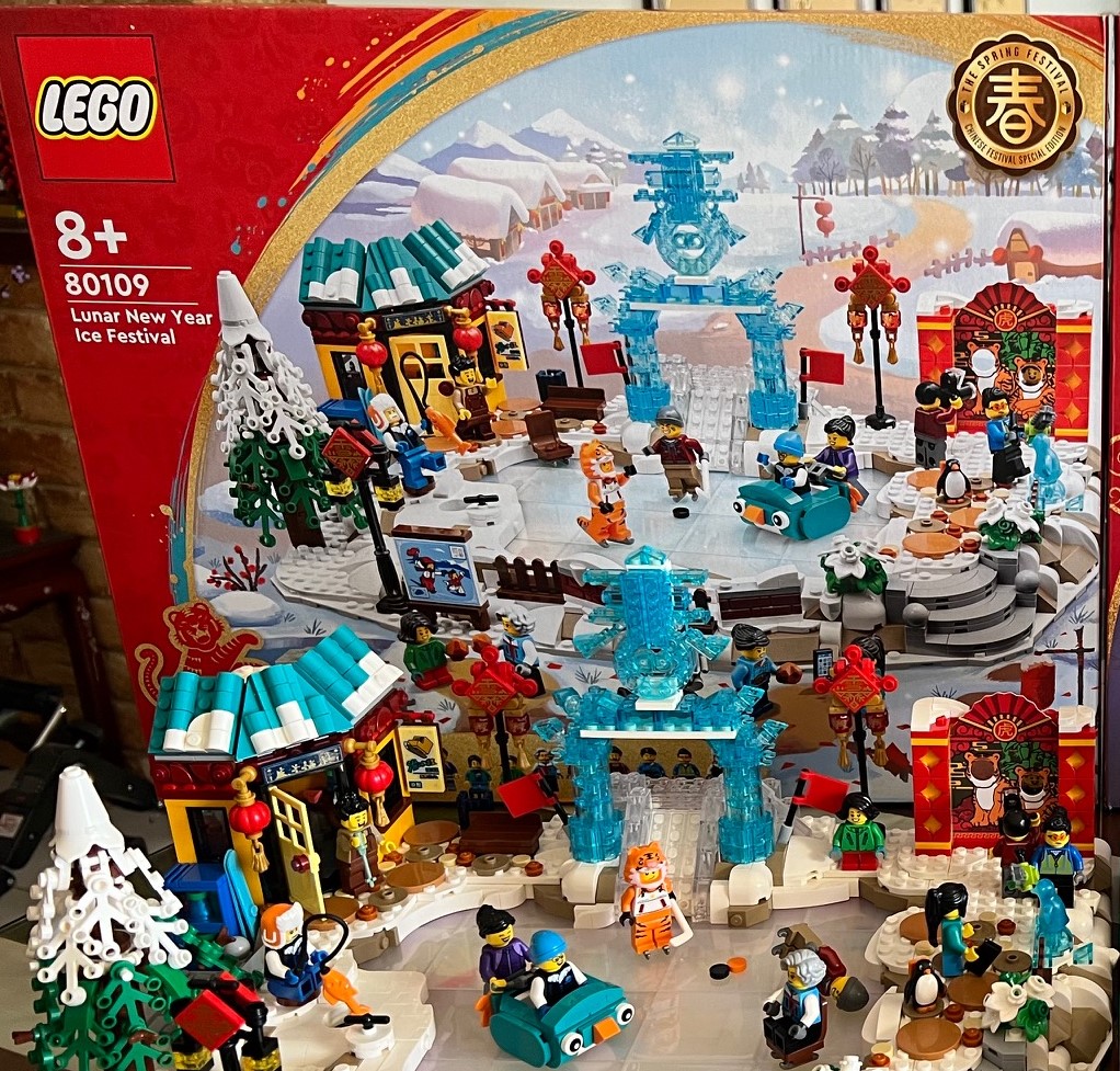 It took me under 3 hours to build this set. Like a few LNY previously released, this set is based on a particular type of scenery. I believe this set is referencing the Harbin International Ice and Snow Sculpture Festival, which is held in Harbin, the northern city of China, every January. But as it is in mini scale we get a nice ice-skating park here, which must be how the northern part of China celebrates their LNY.
