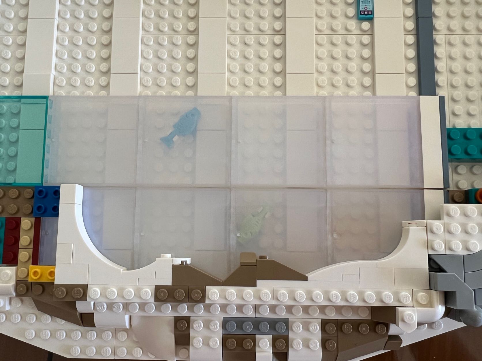 I absolutely love this build! It represents winter scene beautifully, with the use of SNOT (Studs Not On Top) techniques and the introduction of new elements such of the 5×6 panel in frosted trans-white (or whatever name you will call it!). I can tell already it will make those winter village MOCers scream with joy to have these on their frozen lakes! I will be quite ready to apply this technique in my next garden with a fish pond, a major upgrade from my old one.
