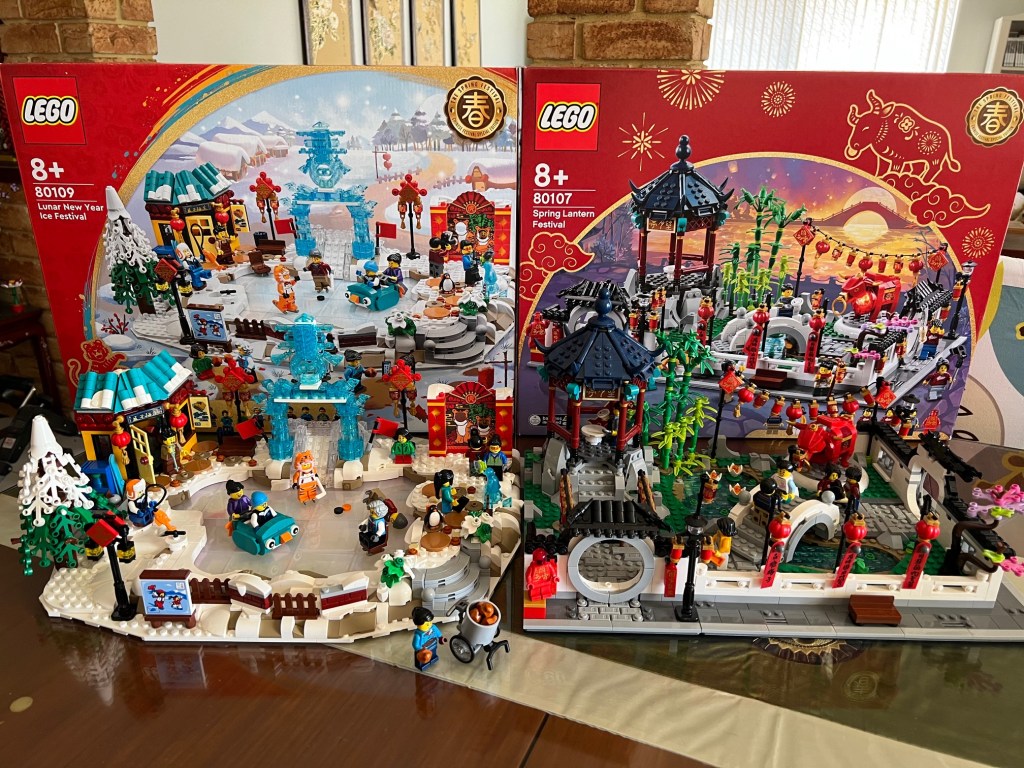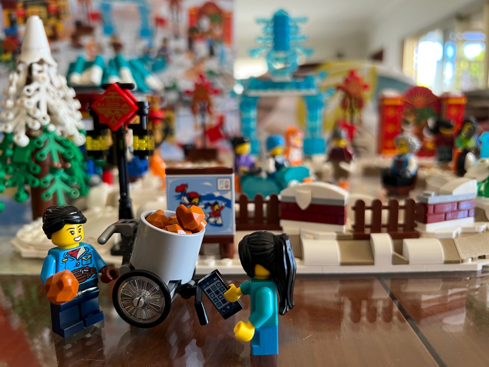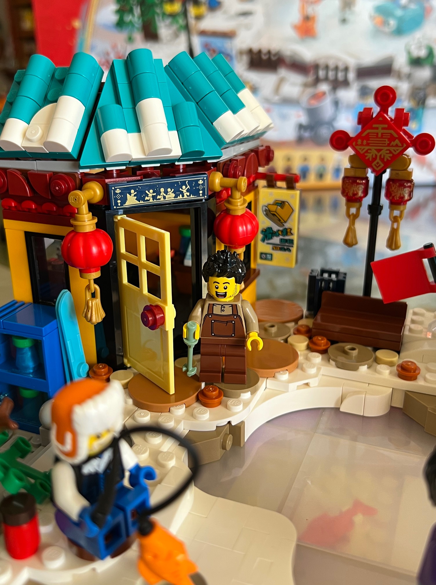 I like the playability of this set, as well as the fact that you can swap out the LNY decorations and turn it into Xmas Winter Wonderland if you are keen. With a whopping 13 Minifigures it surely keeps the festival busy. I have also placed the set side by side with set 80107 Spring Lantern Festival to show you how big the set actually is.
