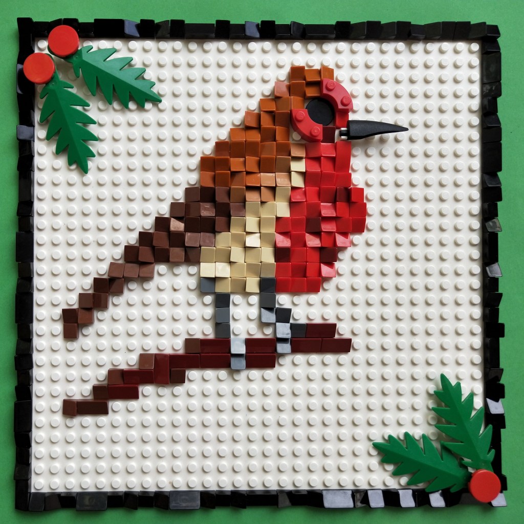 “I walked over to the brick drawers and my brain said – experiment with cheese wedges… And this is what came out as a quick build.. a little robin, like a northern hemisphere Christmas card.”