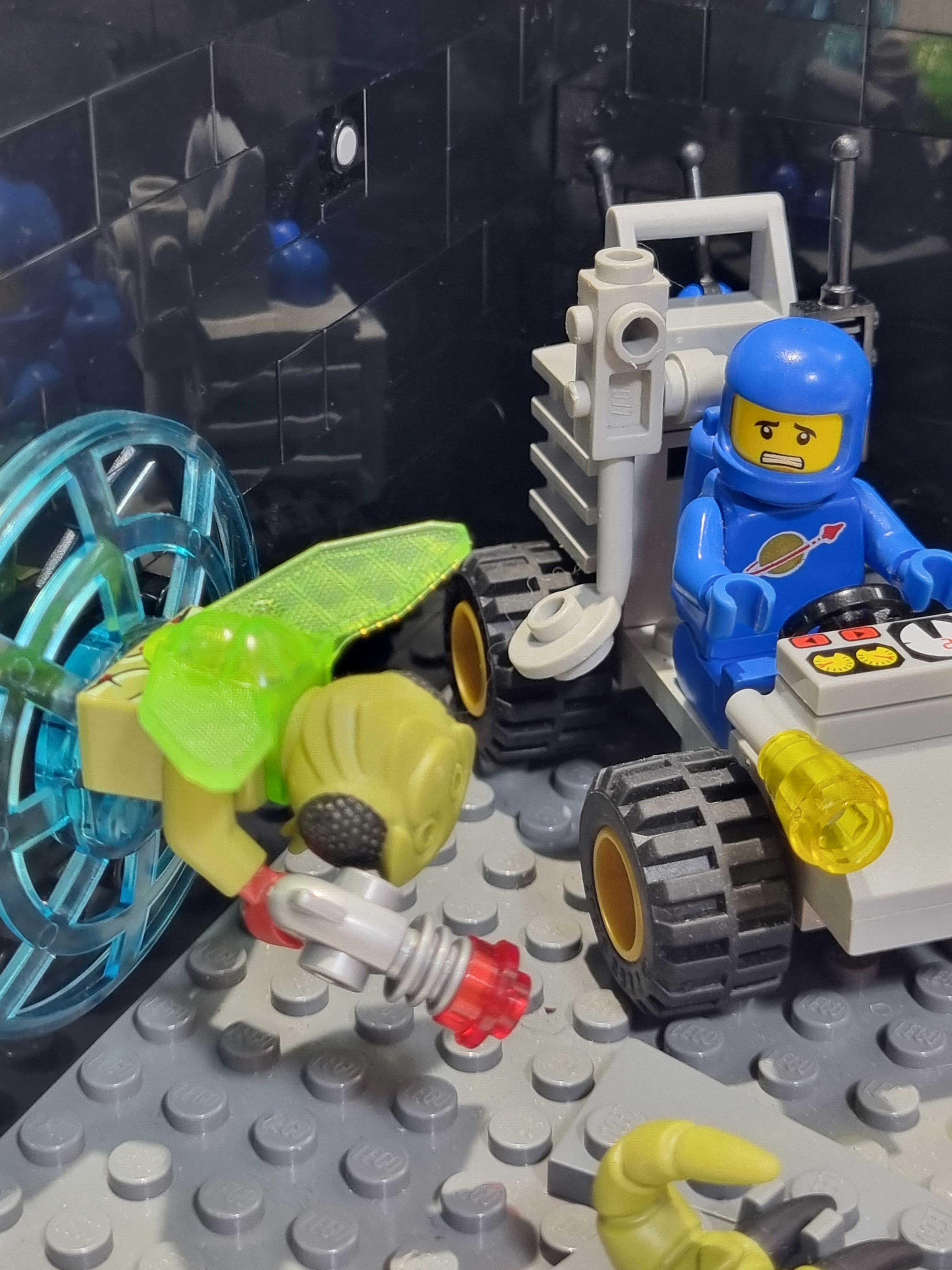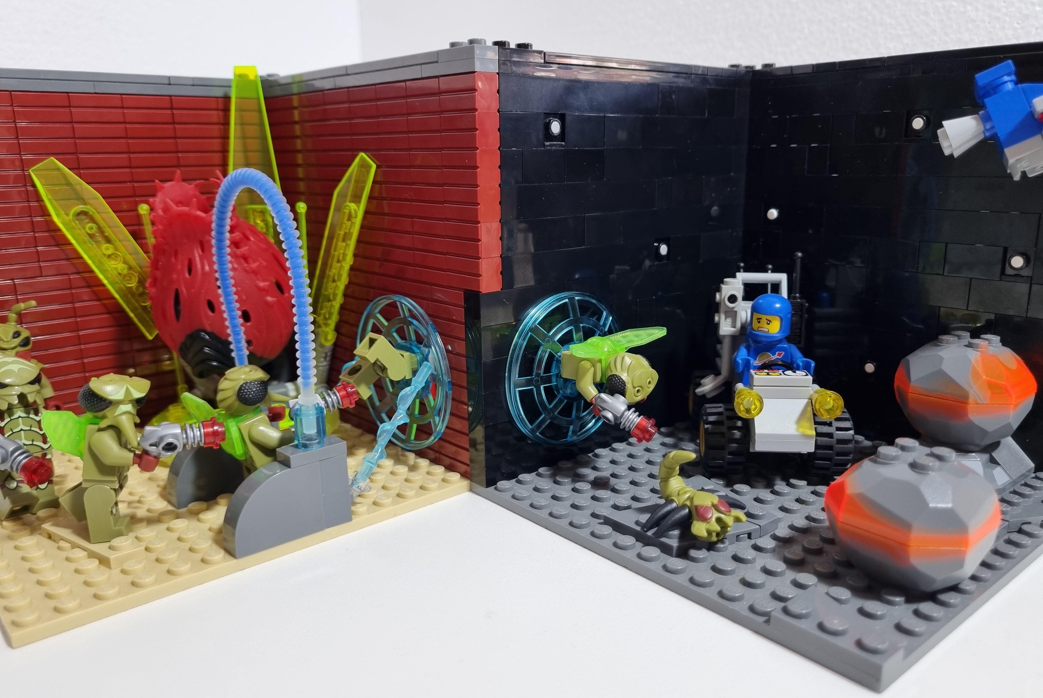 A cunning ploy by Mike to do a build using minifigs from one of my recent favorite themes, Galaxy Squad! The portal going from one habitat to the other is such a great idea. Benny ain’t too happy by the looks of things! A little medieval to round out his submissions, and if I’m not mistaken, that’s Two Ball Tony!