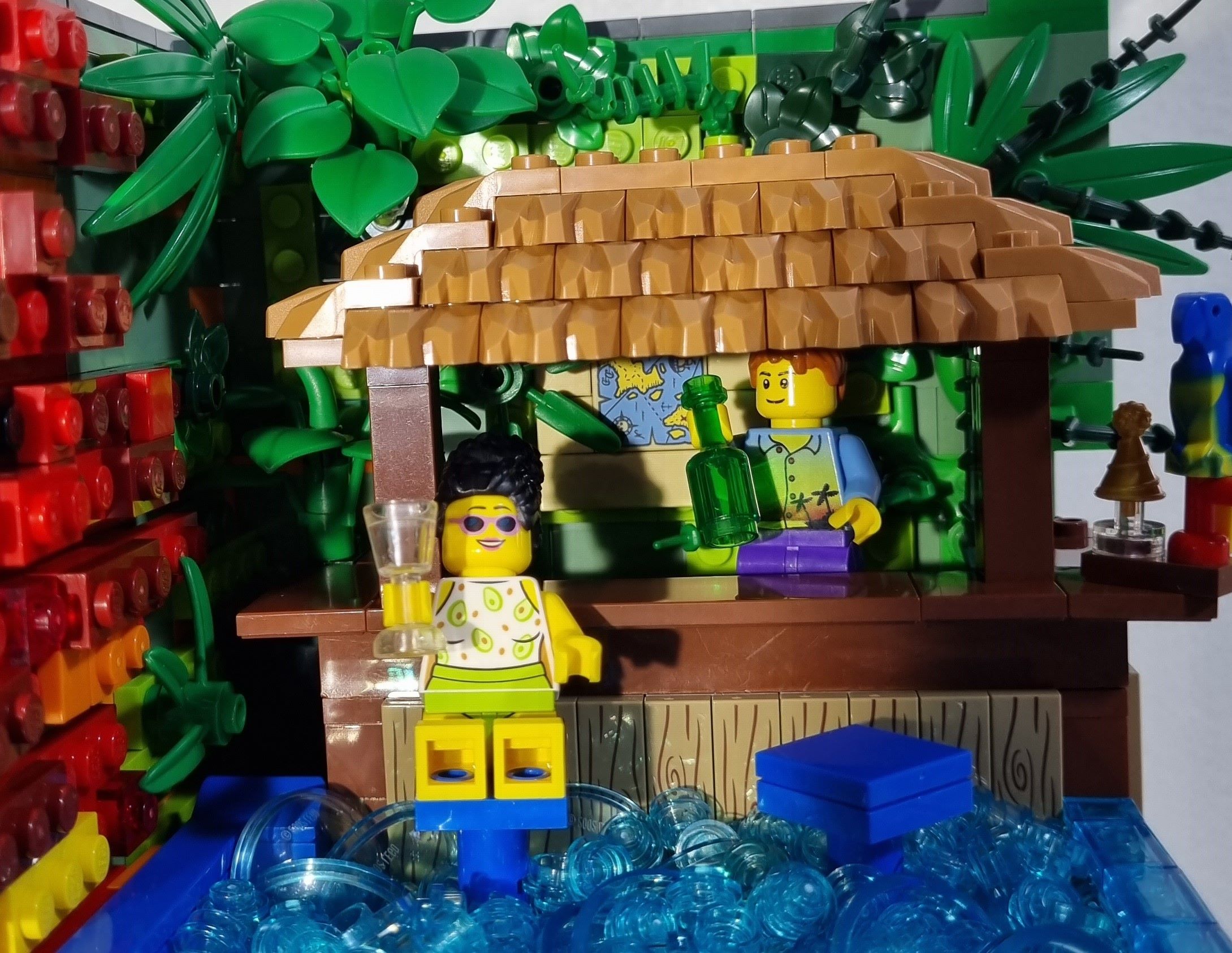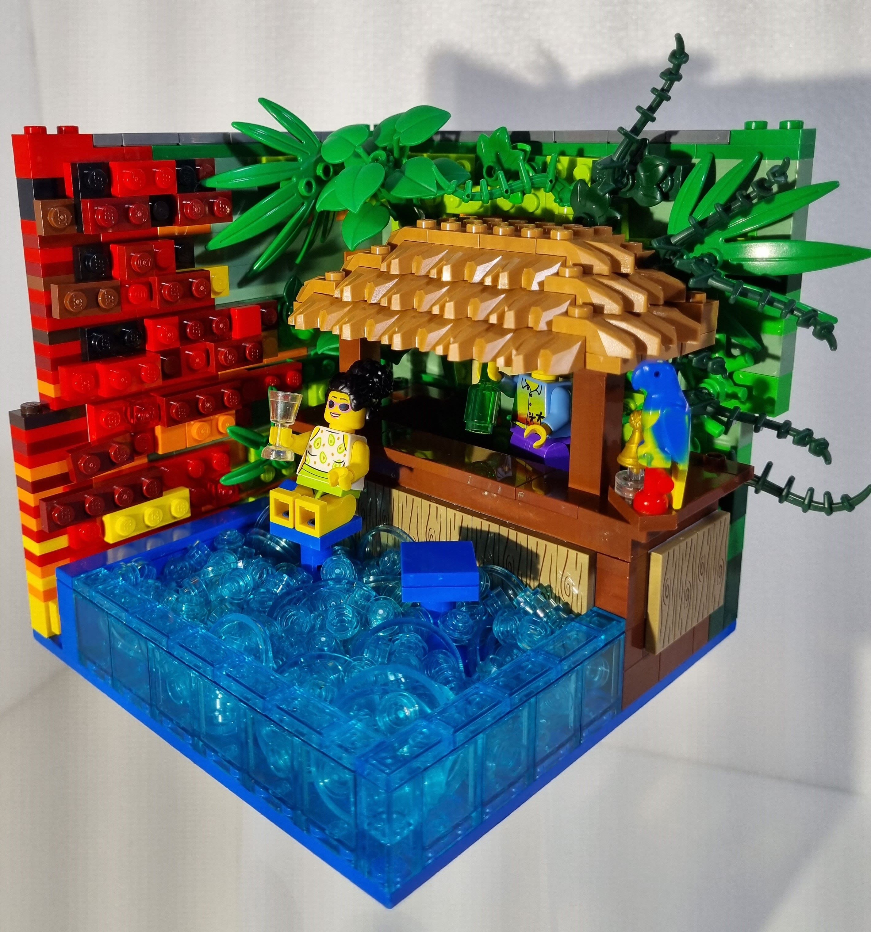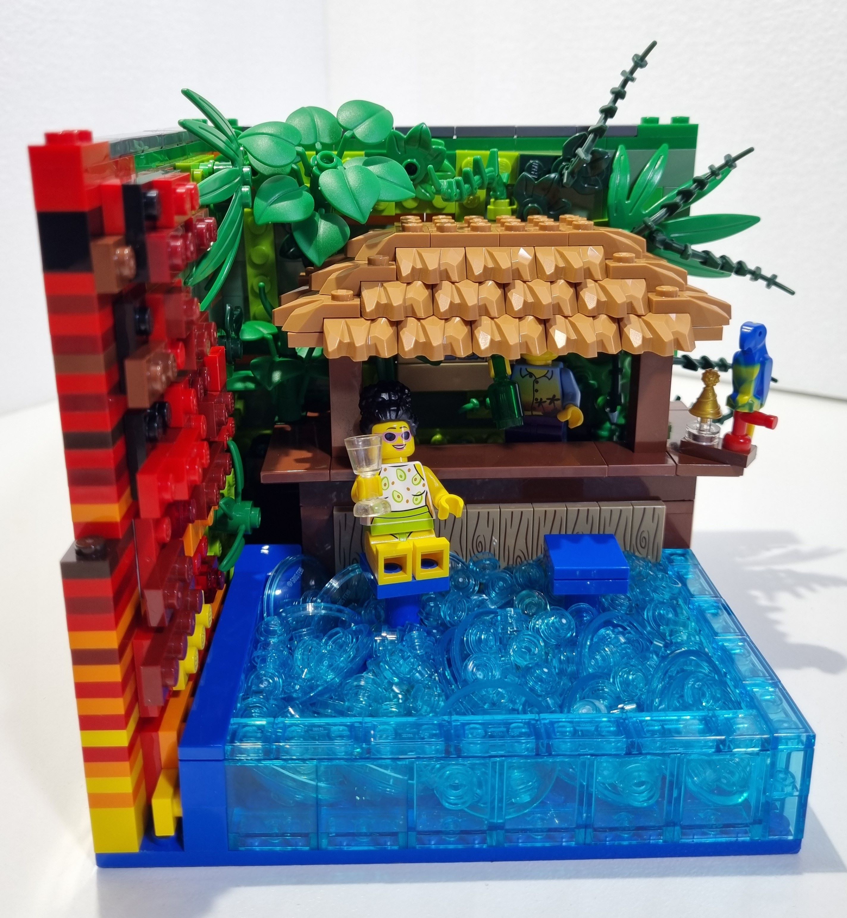 A excellent collection of builds from Narelle, a fishing trip featuring (what I think is) an attack from a pesky seagull, a swim up bar (that’s just not fair, I NEED a holiday!) and a stone giant with some of the best parts usage Ive ever seen, it looks great!
