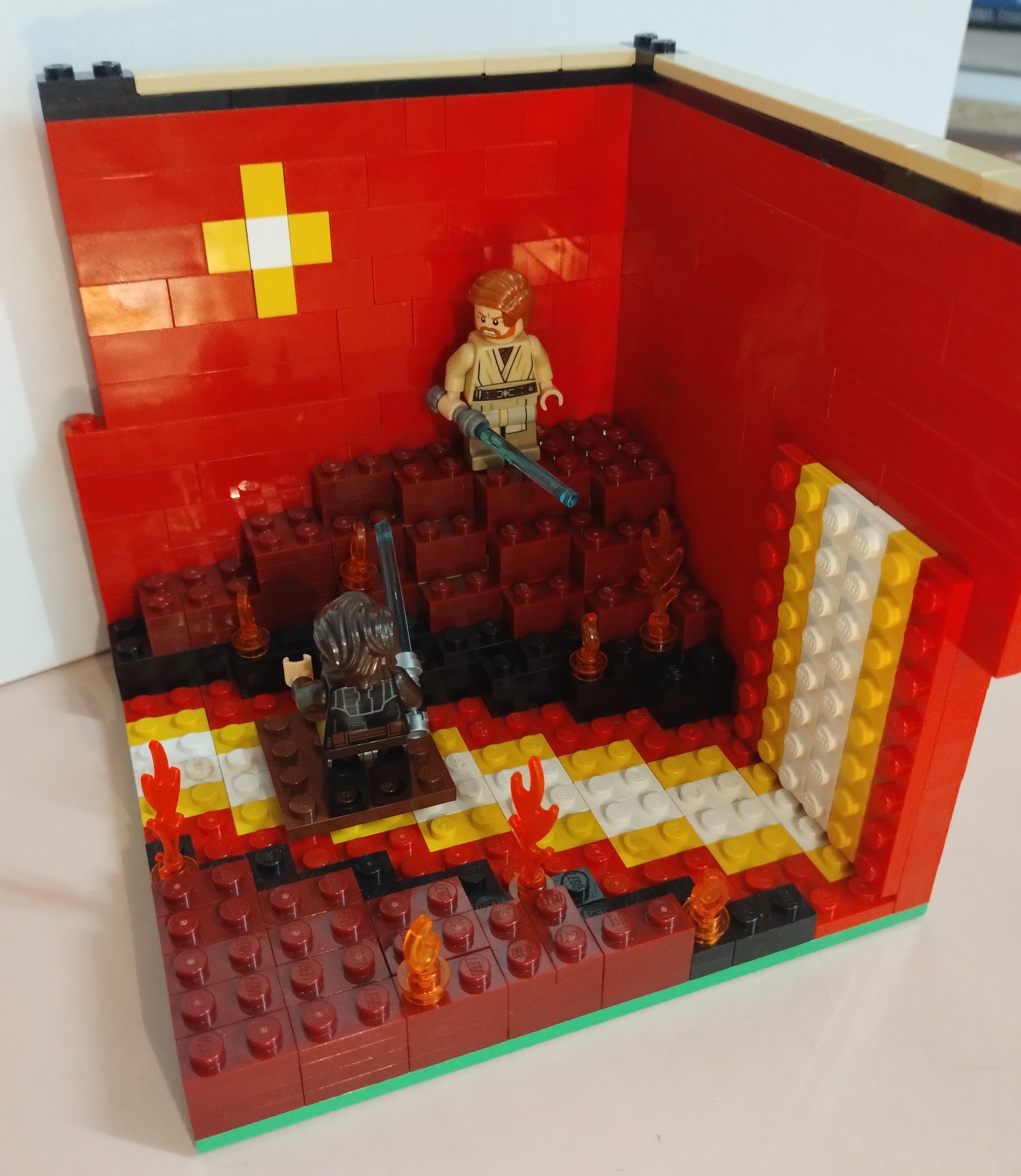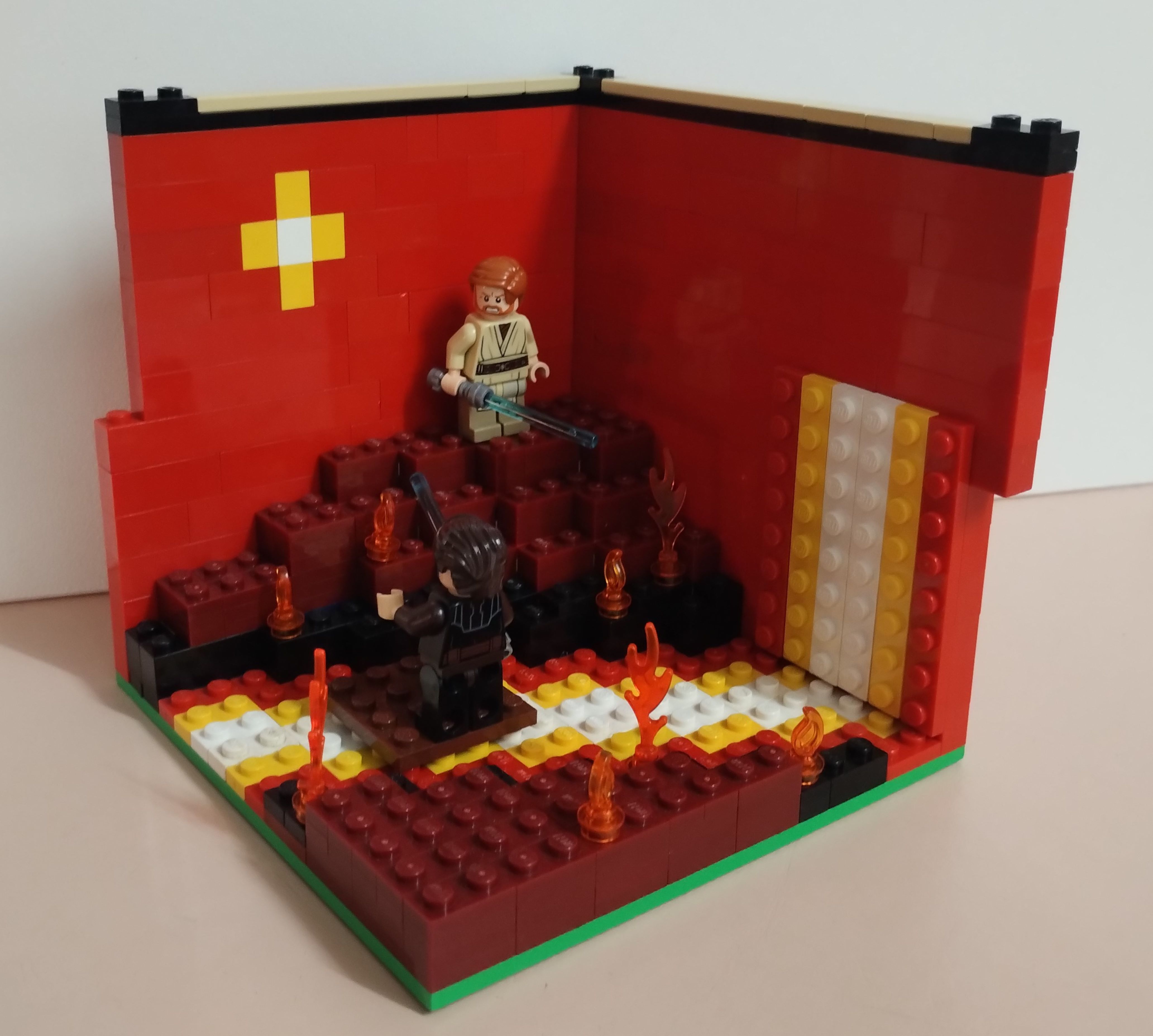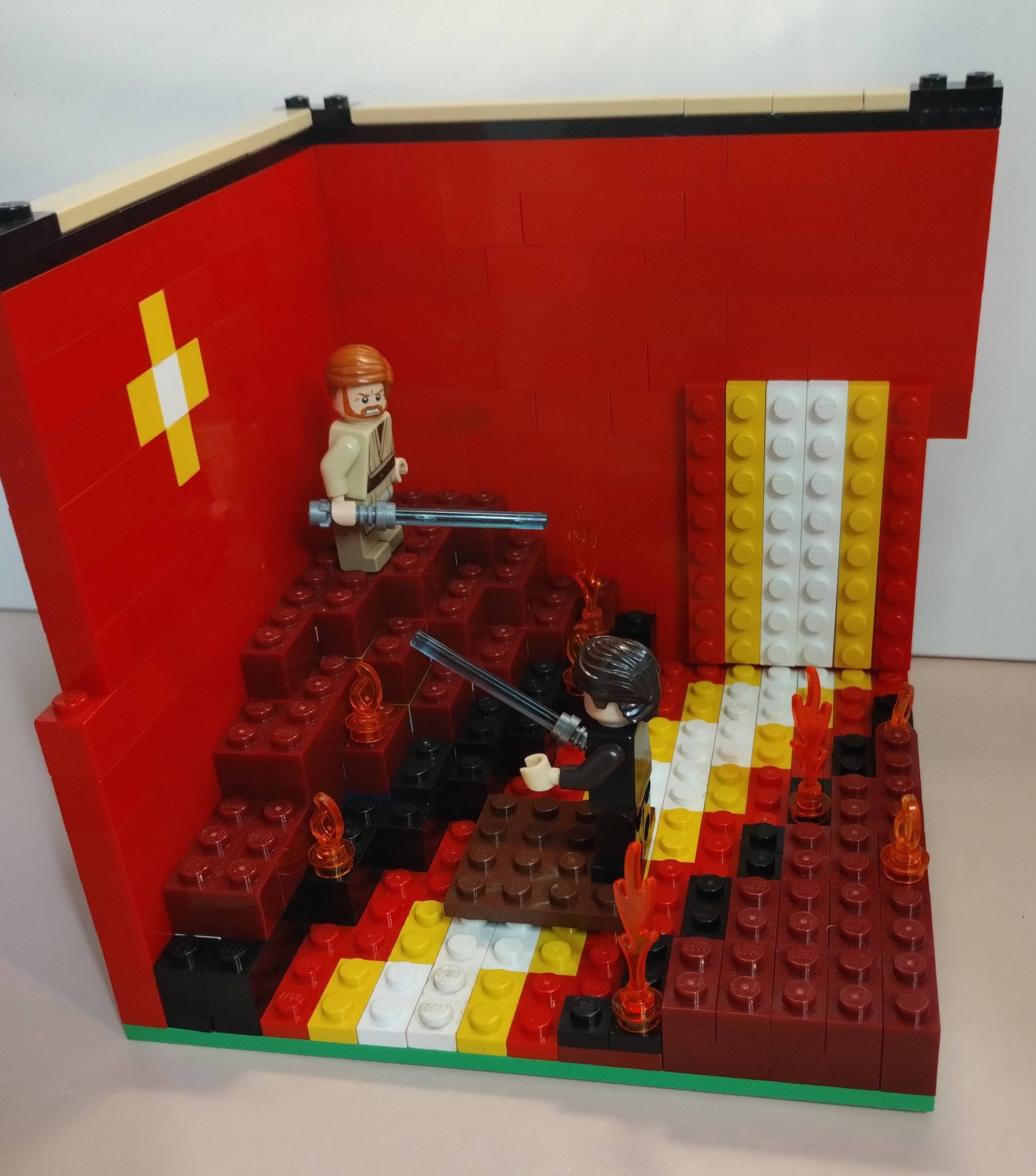 The now classic scene, in Lego form. Hes got the high ground Anakin, and you know it! Great job Trey!