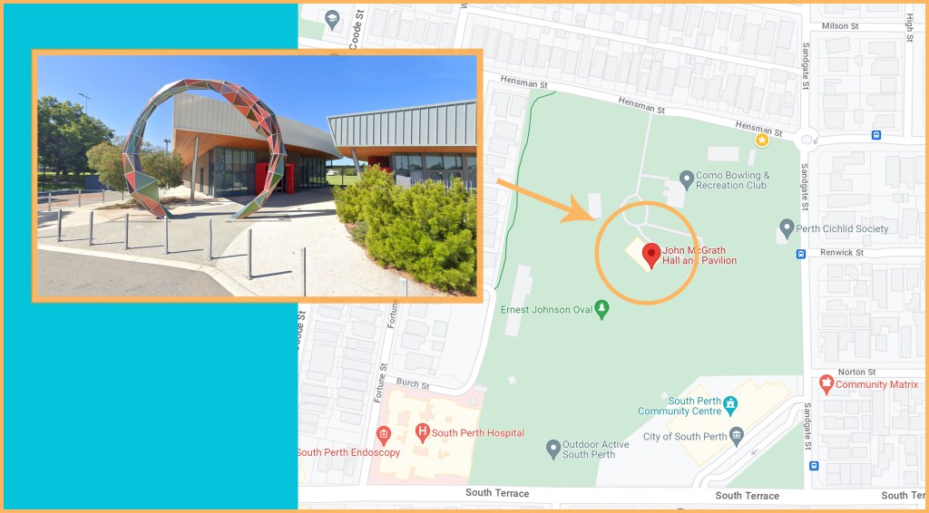 Location: John McGrath Hall and Pavilion, 97 Hensman St, South Perth WA 6151