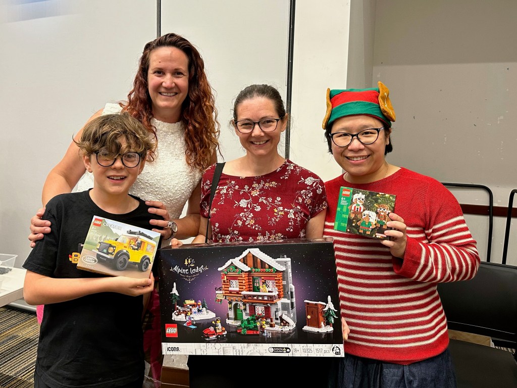 And it wasn’t just the Grinch handing out goodies. As is traditional with our monthly build nights, we had door prizes. For your $5 entry, this time round we had SO many prizes including the magnificent Icons Alpine Village and the festive pair of the Nutcracker and Gingerbread Ornaments. If those weren’t enough, kind donations from the lovely people that are Judy and Amy, brought the total to 7 (SEVEN!) door prizes. Added to the bundle was the little Landrover Defender, a full festive set of LEGO Store Build-A-Minifigures, and another Nutcracker & set of Gingerbread Ornaments.