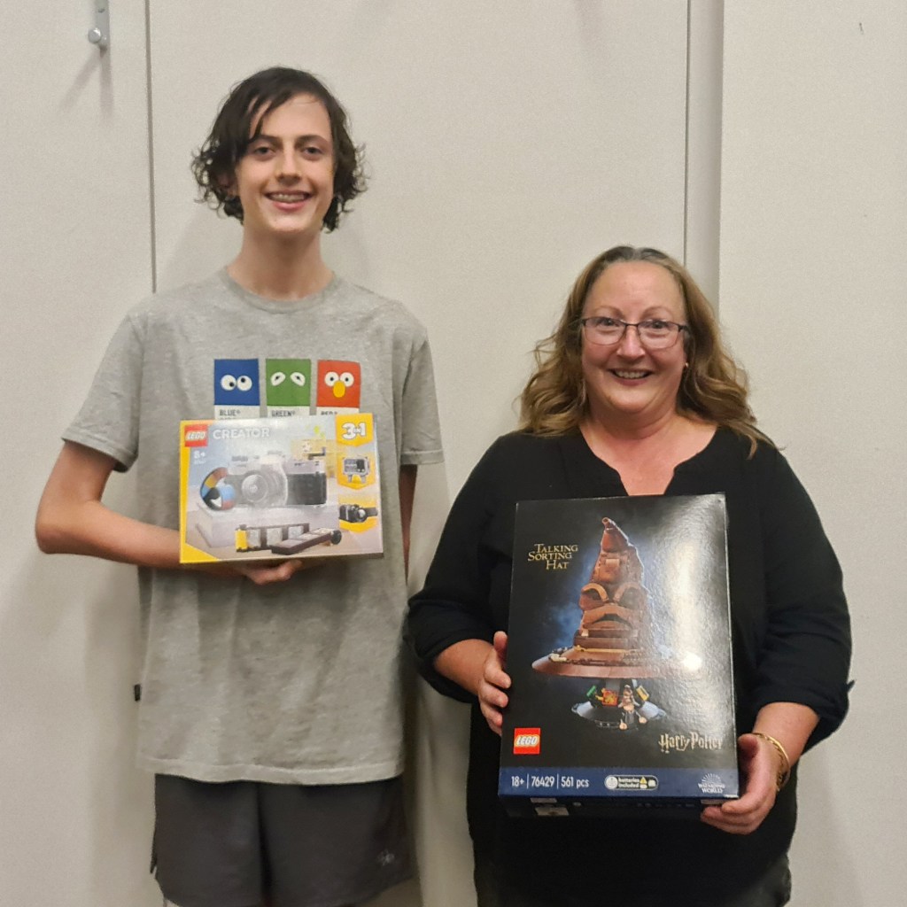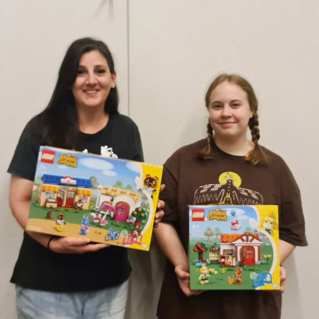 Now back into the action. Last night we gave away an incredible 6 (SIX!) Lego prizes across three draws. For our Members’ Draw we handed out three sets from the newly released Animal Crossing series. These sets are absolutely adorable and give me huuuge Fabuland vibes in the best way. Congrats to our winners Maxine T, Nicola G (collected by Eleanor below on her behalf) and Rob C (absent). Membership perks mean even if you can’t make it on the night you may still win like Rob did last night. Awesome hey?