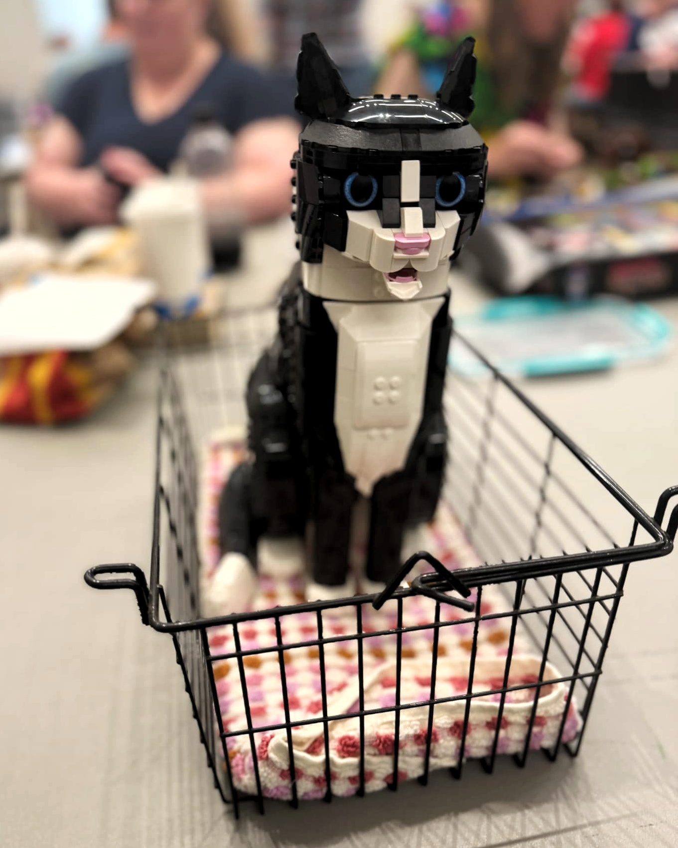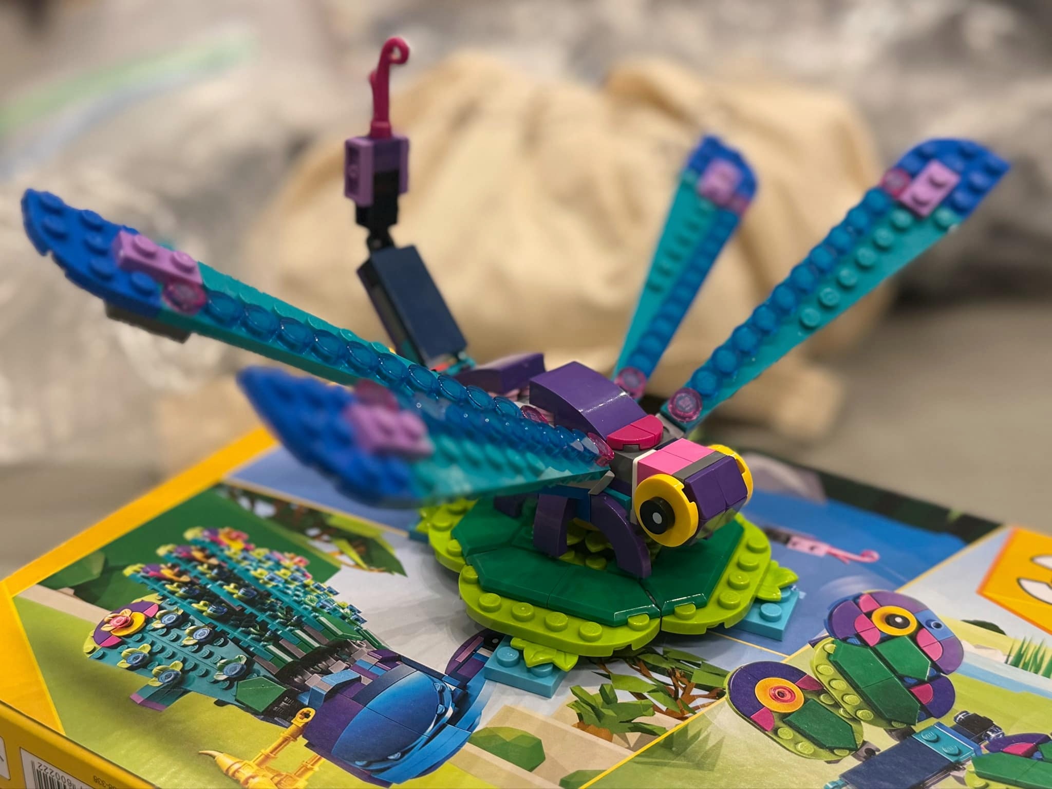 Sylvia’s Tuxedo Cat is so adorable, and as is typically the case in my experience with cats, has immediately found the comfiest spot to sit. Next up is the spooky Never Witch’s Nightmare Raven from the Dreamzzz line. I believe this build belongs to Nikki, or was it Rod? Reports on the ground are sketchy. Many (read: some) apologies. Even more terrifying to me is David’s creepy Aragog spider. I like, but I don’t like – *shiver*. Moving swiftly on, Eleanor’s dragonfly is a gorgeous alternative build from the Exotic Peacock 31157 set. It really holds up as a design I’d say.