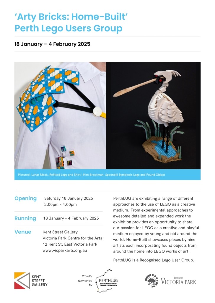 We’re nearly through this massive issue of the Breakdown, but one final announcement. Nine artist-builders are bringing their LEGO works of art to a real art gallery this January 18th – February 4th! The ‘ArtyBricks: Home-Built’ exhibition has been a massive undertaking so I’d encourage you all to please show your support at the free opening event at Kent St. Gallery, Saturday Jan 18th 2-4pm. We would truly and absolutely appreciate every lovely face that can make it.
