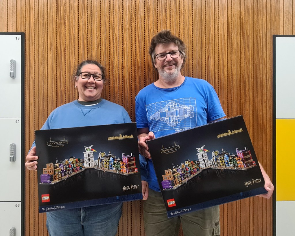 That’s not all for prizes just yet. Our extra optional bonus limited edition raffle was quite special indeed. This month, a $5 ticket gave you the chance to win one of two massive Harry Potter Diagon Alley Wizarding Shop sets. That’s a whopping 2750 piece set. Congrats to each Jenna and Paul – what a score!