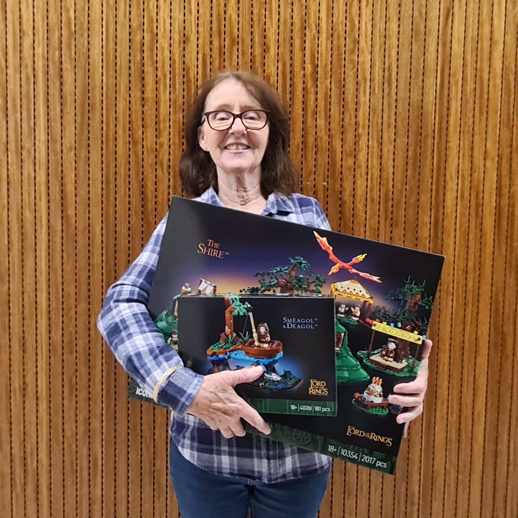 If the Members’ Draw didn’t offer up enough prizes then take a look at our extra special bonus raffle. A $5 ticket bought you the chance to win BOTH the new Lord of the Rings Shire 10354 AND the limited Gift-With-Purchase Smeagol & Deagol 40761! It looks like our happy winner, Lisa S, was struggling a bit to carry all that Lego but I’m sure some very generous folks offered to lighten the load and take one or both sets off her hands. I know I would! Joking aside, congrats Lisa on an epic win.
