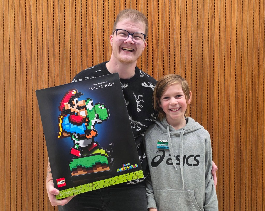 Cleaning up in the extra special bonus raffle this month was Dylan – joined here by Gabriel, who may or may not have had his eye on this massive Mario World set (71438). Can’t blame the little fella either; what an epic fun set that has to be. Mario and Yoshi’s little legs move and everything! I believe our lucky winner here received the ticket as a birthday present. I’d say that $2 investment paid off mightily well; maybe moreso for Dylan though. Congratulations to all our winners. We’ll be back again next month with yet more giveaways!