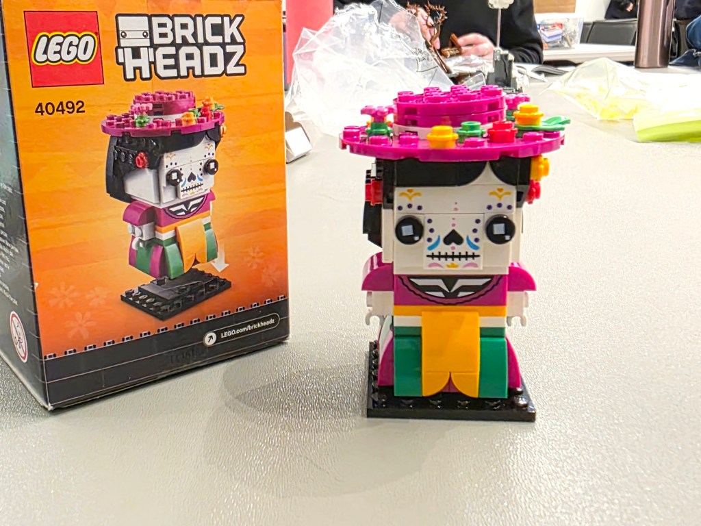 Now to spy on some of what y’all were building Monday night. Judy’s La Catrina Brickheadz is so bright and colourful. Sooooo much character packed into a diminutive little Brickheadz set. Kat’s Angel will look glorious beside Stitch on display. What an absolute charmer this pink alien thing is. That was supposed to be a compliment! Helen’s Airplane vs. Hospital Bed set looked like a bunch of fun but between these two fierce competitors, my money is on the guy not currently recovering from his last crash. Meanwhile, Dale contributes with his Dreamzzz minifig. That’s four whole parts assembled in one night – surely a record! Jokes aside, thanks Dale and team for all your efforts putting these wonderful events together.