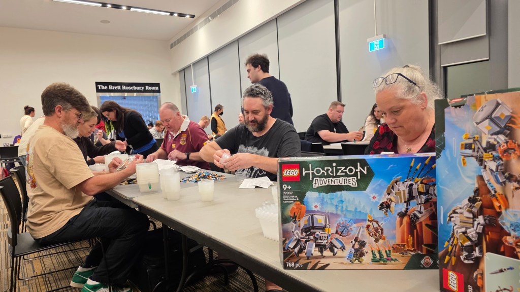 Let’s move away from all these prizes to the other activities of October’s Buildapalooza. The Parts Draft table was abuzz again with sorting, sorting, some more sorting, and later selecting, of course. This month’s offering to the parts draw deities was the highly detailed Horizon Aloy & Varl vs. Shell-Walker & Sawtooth 77037. I’ve just started building this for my own collection and can tell you it’s a great set to part out with all those little plates and tiles and fiddly bits. Solid pick team. If you’d like to join in with the Parts Draft next month, bring along two copies of the 76442 Harry Potter Hogwarts Castle Charms Class. I’ve been informed it’s a small set often on sale. Looks a goer.