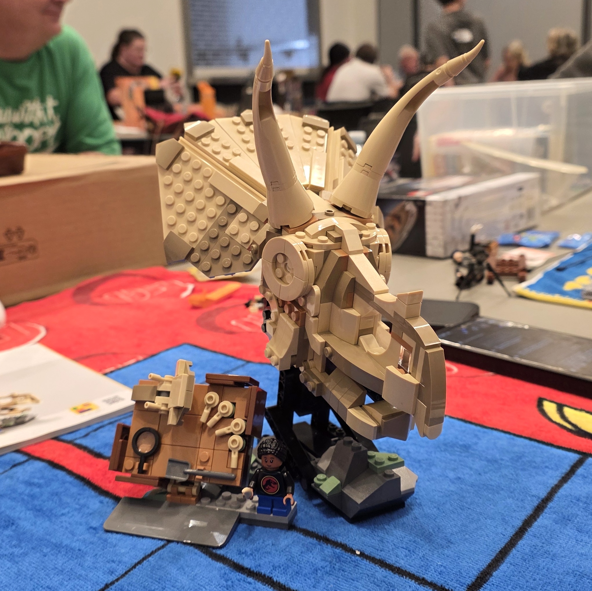 We do actually build Lego at these build nights…sometimes. Dale brought along his vintage Galidor set. What a rare find! It was such a privilege to see a sample of this infamous line in person: so, so different. I can’t say it’s a complex build with a high piece count but we all have to start somewhere mate! Luke’s fossil Triceratops build looked a lot more intricate in comparison, though admittedly it did lack the out-there designs of Galidor! Having said that, the Triceratops surprised me with a ball joint hidden behind the head. Is there a Lego Triceratops skeleton body set out there I’m also unaware of?? In any case, I guess you’re just going to have to build the rest of the body yourself now, Luke. Oh well, has to be done!